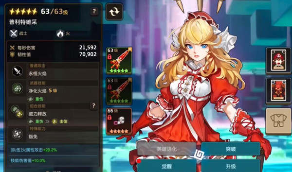 每秒伤害:793-870、火属性 攻击:286-314、暴击率:11%、满破加成:攻击 +10%
