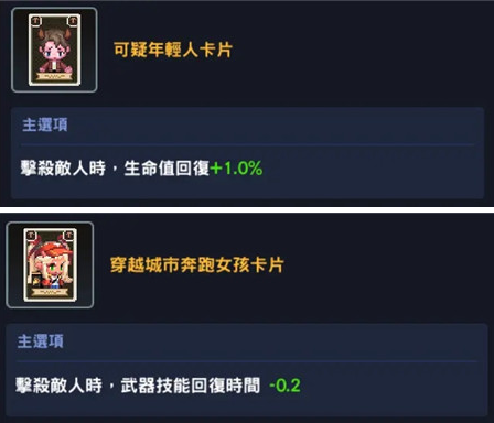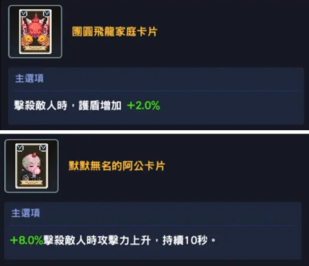 击杀+护盾2%、击杀+攻击8%、击杀+体力1%、击杀-冷却0.2秒