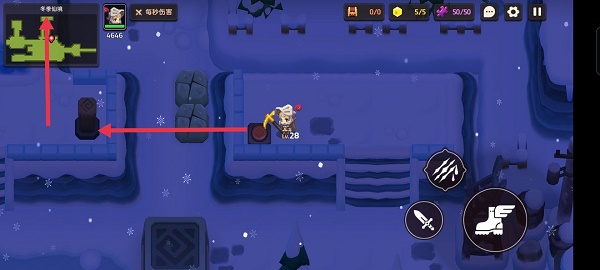 看完剧情后跟上,来到图示位置房间,用金稿子即可击败雪怪(同理银稿子打这个雪怪没伤害),击败完雪怪后看完剧情直接获取