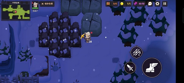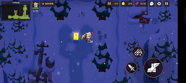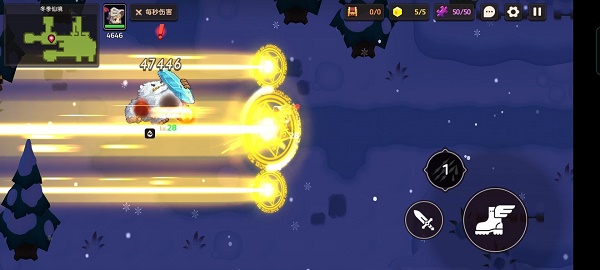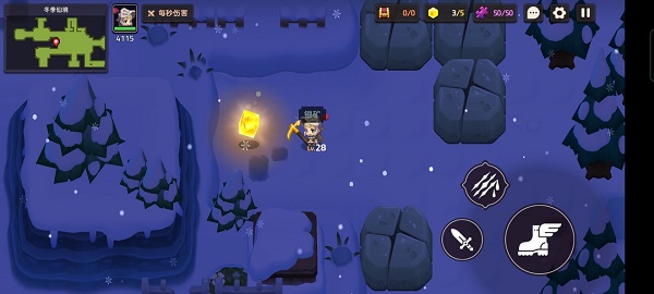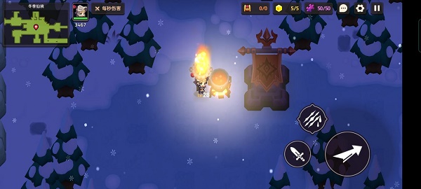 拿到银稿后来到图示位置,攻击雪怪即可对雪怪造成伤害(铜稿打雪怪不掉血),我这里因为已经升金稿子了所以攻击特效不一样,你们不用管,用银稿子打就行了
