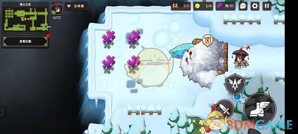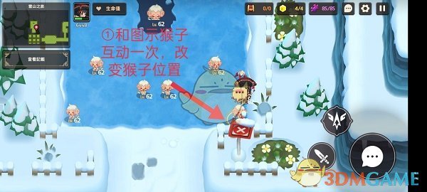 然后搬着炸弹往左,用炸弹将睡觉的雪怪炸醒即可完成信息记录