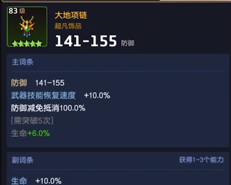 另外饰品方面,在圆形竞技场中莉娜通常会作为队长出战,所以推荐使用已经洗好属性的【红玉魔镜指环】或【大地项链】,也可以选择【黄金怀表】。词条推荐加武器技能恢复速度的。
