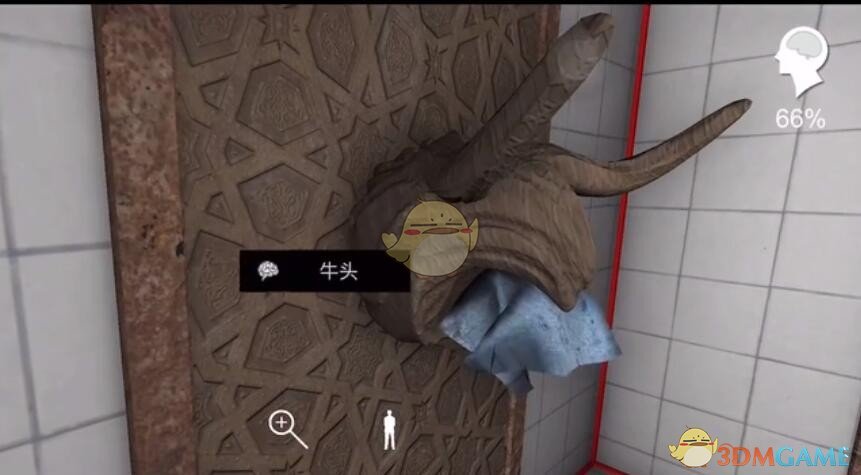 位置:得到“提示1/5”之后查看装有牛头的门点击之后获得这个线索。