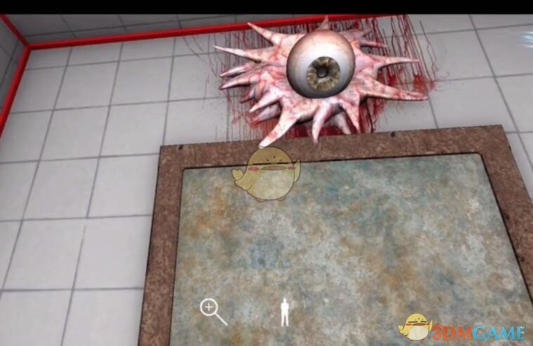 位置:找到“牛头”线索之后,再次查看右边门上的小洞,发现血液再次流出来。这个时候抬头查看将眼睛线索进行获取。