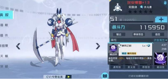 1、狄安娜兽是一个水属性的输出,自身具有爆伤加成,奥义技能倍率极高,击杀目标后还可以触发追击,是十分强势的收割数码兽。