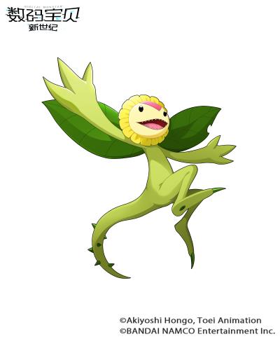 2、向日葵兽:植物型数码宝贝,奥义技为从所有花瓣中释放太阳光线的“太阳光束”、挥舞着尾巴般的茎释放尖刺的“仙人掌之尾”;