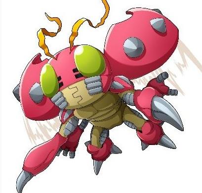 4、力神比多兽:同时拥有比多兽和古加兽数据的终极昆虫型数码宝贝。力神比多兽拥有巨大的角和钳,可以说是完全弥补了性质相反的两种数码宝贝缺点的形态。
