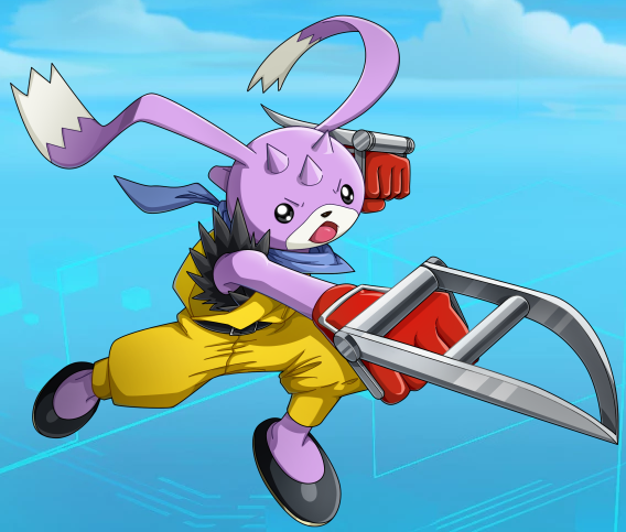 在中国深山省内地被发现的武斗家数码宝贝。以那些借邮件行恶的病毒为宿敌并追捕他们,在世界各地流浪着。受惠于出类拔萃的拳术资质,尽管还在发展途中。使用自创的兔牙拳。得意技是运用高跳跃力敏捷的潜行拳术「忍迅拳」。