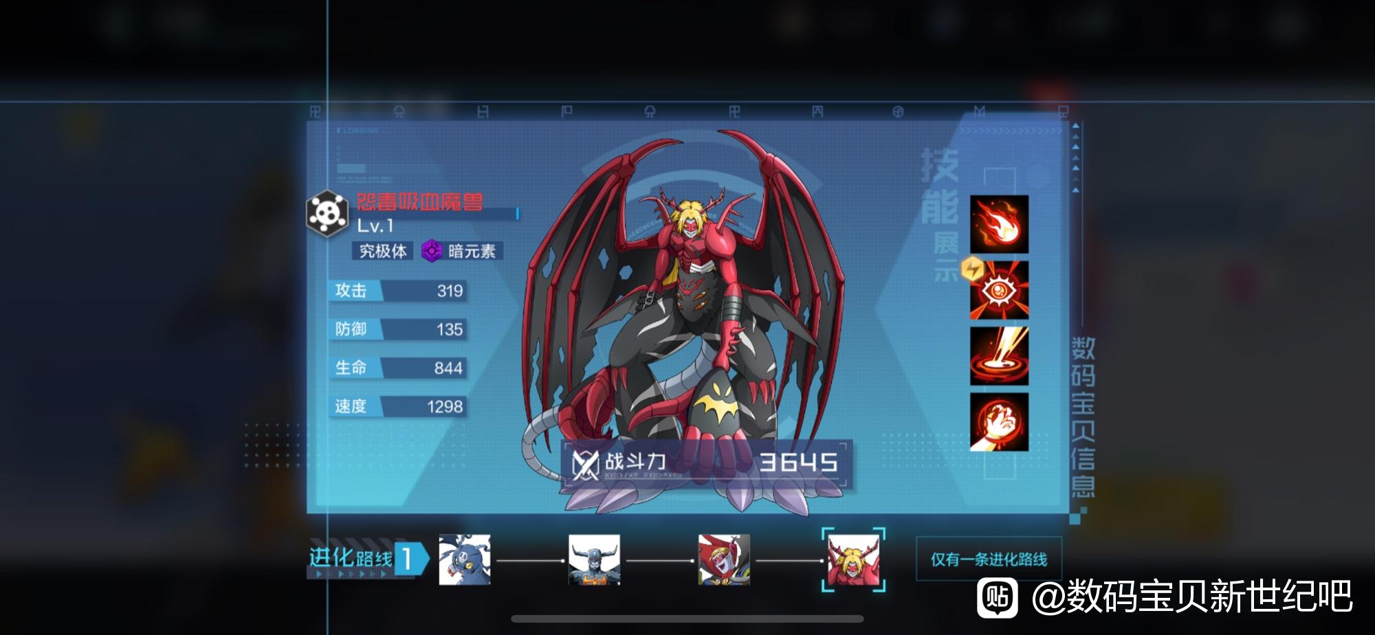 《数码宝贝:新世纪》游戏中怨毒吸血魔兽前期不建议新手用来开荒,后期练一下技能还是可以的,那么今天小编就给大家介绍一下数码宝贝新世纪怨毒吸血魔兽技能强度,有需要的小伙伴不要错过了。