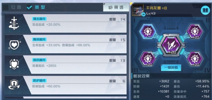 而在阵容成型之后,我们能够开始考虑套装对团队带来的提升,从而进行插件的更换与升级。