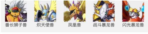 第二套:番长狮子兽-凤凰兽-闪光暴龙兽-战斗暴龙兽-炽天使兽