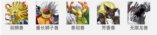 第一套:芳香兽-泰坦兽-无限龙兽-番长狮子兽-剑狮兽