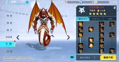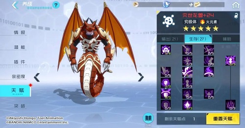 以上就是《数码宝贝:新世纪》灭世龙兽天赋加点攻略,更多游戏攻略请持续关注这里下载站!