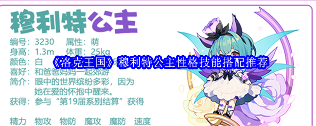 洛克王国穆利特公主是一个编号3230的萌属性魔攻宠物,是19届系别结算宠物!下面是小编给大家带来的《洛克王国》穆利特公主性格技能搭配推荐,技能搭配推荐:天界之蕾+童言无忌+穆如清风+萌语花信。性格推荐:胆小、保守。