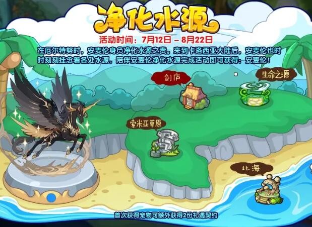 如活动名称所示,小洛克们需要前往不同场景消耗体力净化水源,五个场景的水源都净化完毕后即可获得宠物安麦伦!