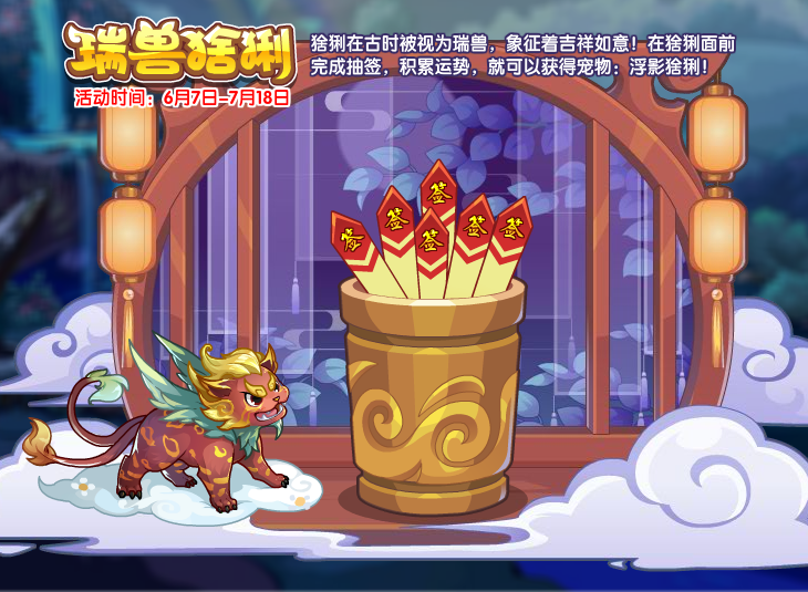 猞猁在古时被视为瑞兽,象征着吉祥如意!在猞猁面前完成抽签,积累运势,就可以获得宠物:浮影猞猁!