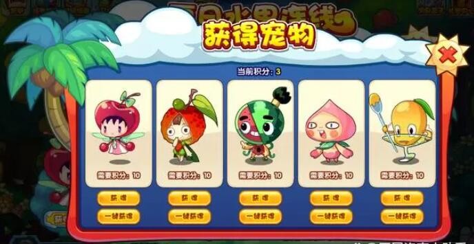 活动获得:宠物“樱桃小丸、荔枝小妹、西瓜大郎、水蜜桃君、芒果小弟”,礼遇契约*2
