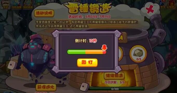 当锻造进度满100点可以获得一把雷锤,最多可累计获得三把。消耗一把雷锤可以兑换宠物“黑耀豆豆”;消耗两把雷锤可解锁宠物“黑耀雷锤”的进化资格。