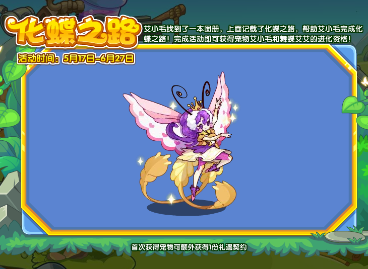当完成结茧就可以领取:艾小毛,当完成结茧才可以解锁:舞蝶艾艾 超进化!