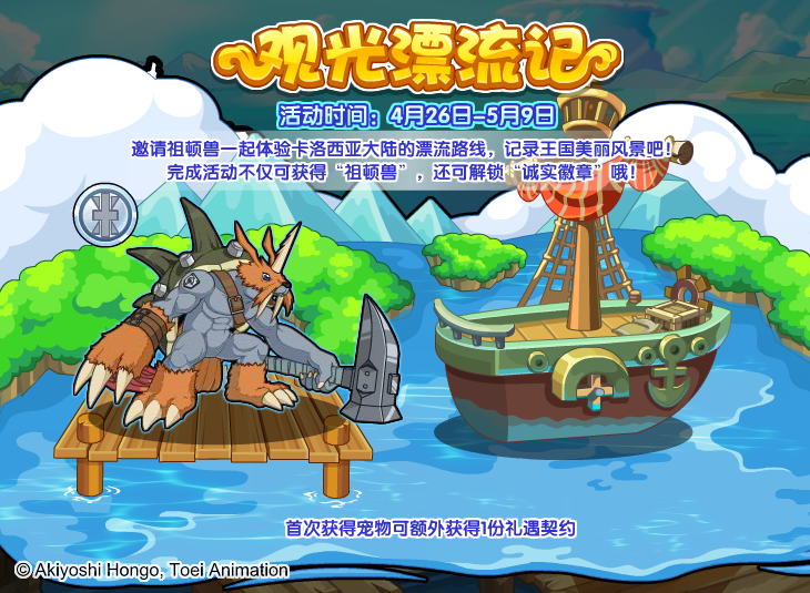 祖顿兽可以在4月26日-5月9日观光漂流记活动中获得!