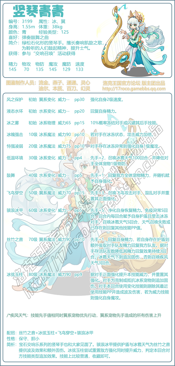 今日小编给大家带来了《洛克王国》竖琴青青性格推荐分享,竖琴青青是编号3199的魔攻宠物,是宝石交响乐系列的竖琴手,可以通过“交响名唤” 活动获得,竖琴青青性格推荐保守和胆小。
