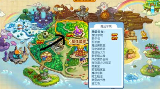 1、进入游戏后打开地图来到魔法学院。