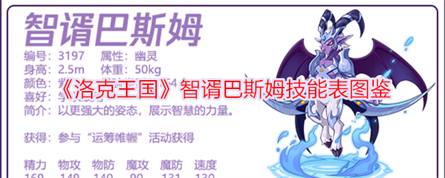 以上就是小编整理带来的《洛克王国》智谞巴斯姆技能表图鉴,更多相关内容,请点击关注手游网!