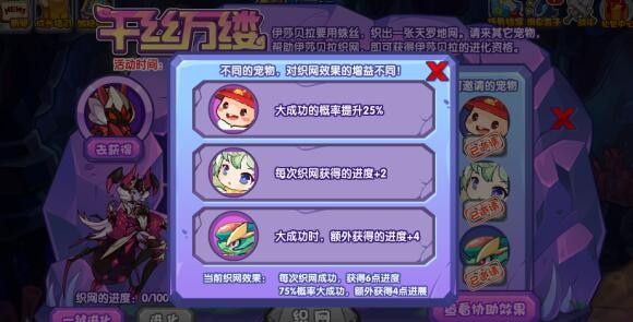 2、每天有三次结网的机会,根据协助效果,结网进度可能有所不同,每次结网需要等待三分钟哦。