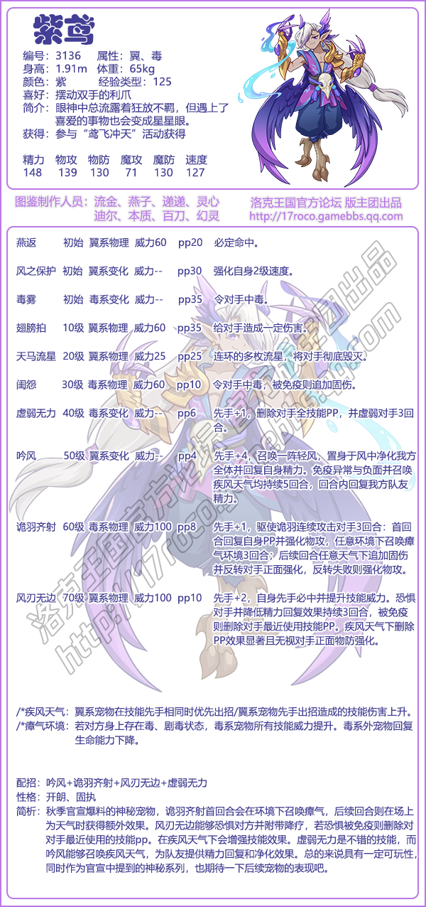 以上就是小编整理带来的《洛克王国》紫鸢技能表图鉴,更多精彩内容,请点击关注手游网!