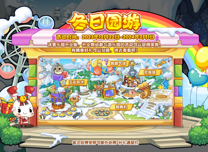 洛克王国冬日园游活动今日上线,开业期间参与游乐园的活动可以获得奖券,有精美好礼可以兑换。该活动可获得宠物很多,包含酷跑呱呱、红帽鸭吉吉、圣诞梅花鹿、圣诞麋鹿王、袜兜兜、幸运熊、袜小兜、红帽熊仔, 今天给大家带来了《洛克王国》冬日园游活动攻略分享,一起看看吧!