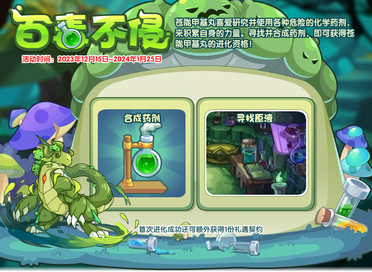 今天给大家带来了《洛克王国》苍陇甲基丸获取方法,在2023年12月15日~2024年1月25日参与百毒不侵活动可以获得苍陇甲基丸。苍陇甲基丸喜爱研究并使用各种危险的化学药剂,来积累自身的力量。寻找并合成药剂,即可获得苍陇甲基丸的进化资格!