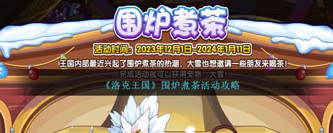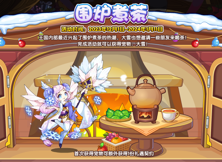 王国内部最近兴起了围炉煮茶的热潮,大雪也想邀请一些朋友来喝茶!完成活动就可以获得宠物:大雪!