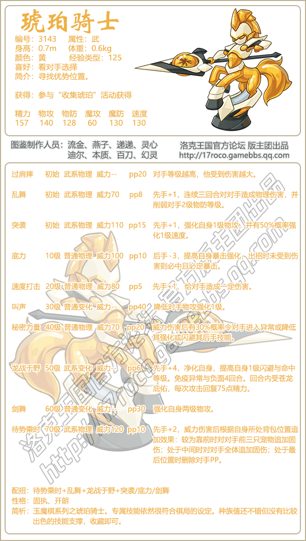 3.玉魔棋系列之琥珀骑士。专属技能依然很符合棋局的设定,种族值还不错但没有比较出色的技能支撑,收藏即可。