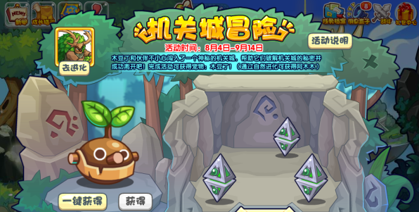1.洛克王国机关城冒险活动就是破解机关城内的秘密,解救木豆丁。