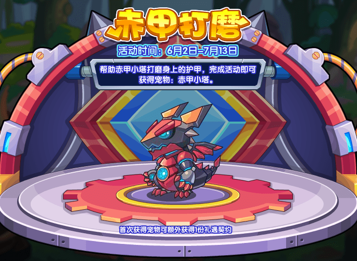 帮助赤甲小塔打磨身上的护甲,完成活动即可获得宠物:赤甲小塔。