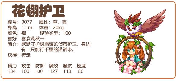 1、花翎护卫是枫雪镇系列的新宠物之一,是默默守护枫雪镇的侦察护卫,但是目前给出的数据来看实用性堪忧,适合收藏