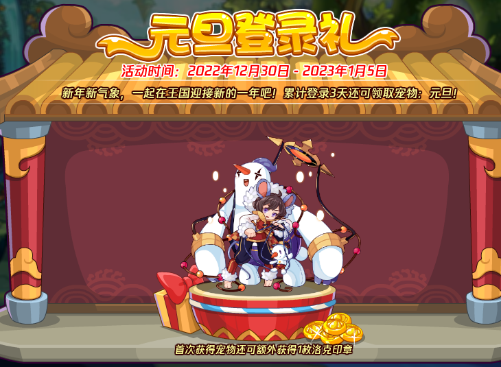 新年新气象,一起在王国迎接新的一年吧!累计登录3天还可领取宠物:元旦!
