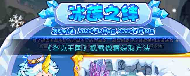 洛克王国游戏中枫雪傲霜可以在冰莲之绊活动中获得,活动中帮助枫雪傲霜集齐冰莲,即可完成活动获得宠物!累计收集5朵冰莲就可以召唤:枫雪傲霜。下面手游网小编就给大家带来了《洛克王国》枫雪傲霜获取方法,感兴趣的速来围观吧!