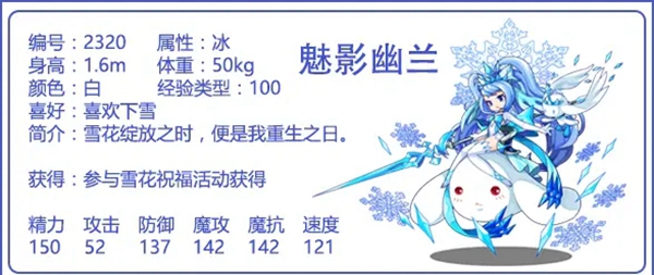 进化路线:大耳帽兜→帽兜娃娃→雪影娃娃→幽兰雪魅/魅影幽兰/雪影冰灵