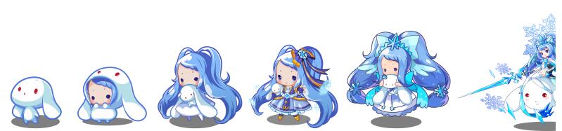 进化路线:大耳帽兜→帽兜娃娃→雪影娃娃→幽兰雪魅/魅影幽兰/雪影冰灵