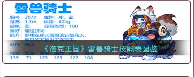 以上就是小编整理带来的《洛克王国》雪兽骑士技能表图鉴介绍,更多精彩内容,请点击关注手游网更新!