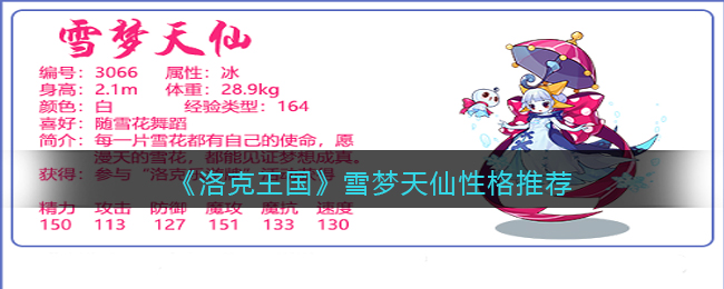 以上就是小编整理带来的《洛克王国》雪梦天仙性格推荐介绍,更多精彩内容,请点击关注手游网更新!