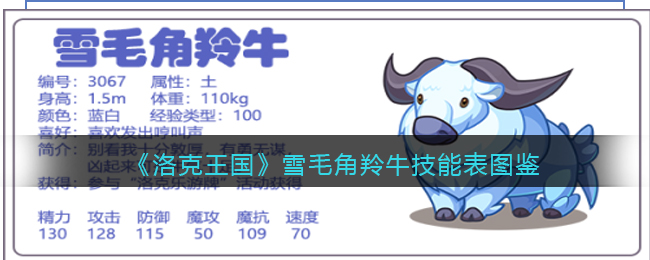 以上就是小编整理带来的《洛克王国》雪毛角羚牛技能表图鉴介绍,更多精彩内容,请点击关注手游网更新!