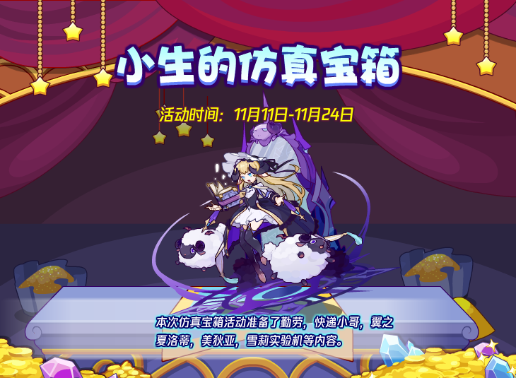 本次仿真宝箱活动准备了勤劳,快递小哥,翼之夏洛蒂,美狄亚,雪莉实验机等内容。感兴趣的宝宝们记得看看哦!