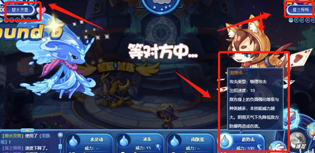 2、最后使用趁势击技能可以让敌方身上的负面状态增加,如果种类负面状态越多本技能威力就会越大,如果是阴雨天气下先降低敌方防御再造成伤害,然后循环使用技能直到普之舜舜没血为止。