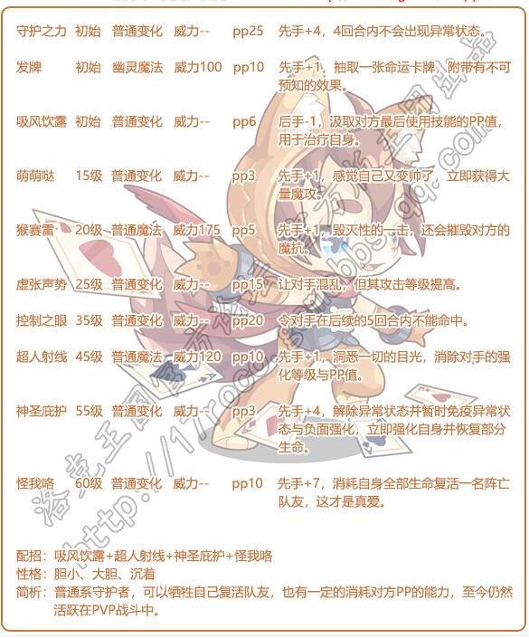 3、普之舜舜简析:普通系守护者,可以牺牲自己复活队友,也有一一定的消耗对方P的能力,至今仍然活跃在PVP战斗中。