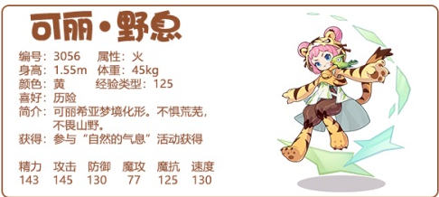 1.洛克王国可丽野息技能配招不灭之炎+虎帽头槌+蛮野冲击+狂乱