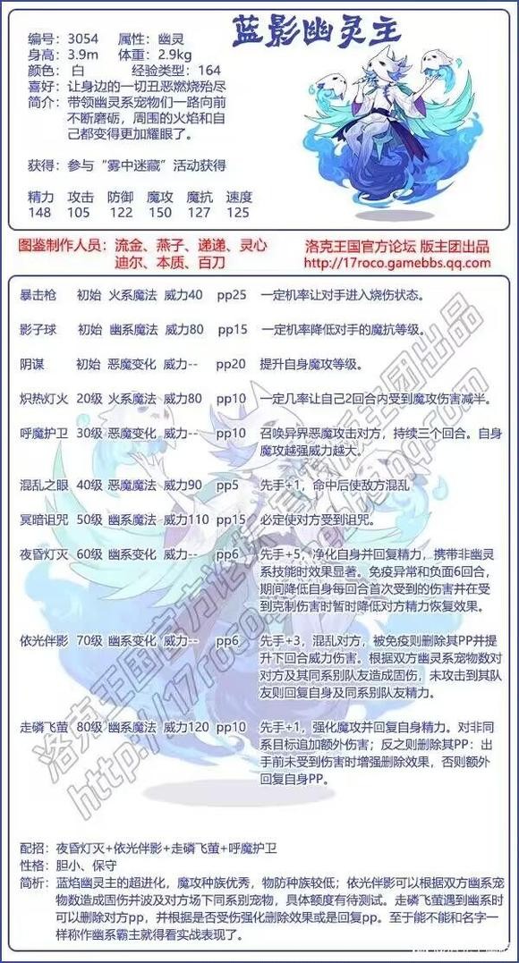 3、蓝焰幽灵主的超进化,魔攻种族优秀,物防种族较低;依光伴影可以根据双方幽系宠物数造成固伤并波及对方场下同系别宠物,具体额度有待测试。