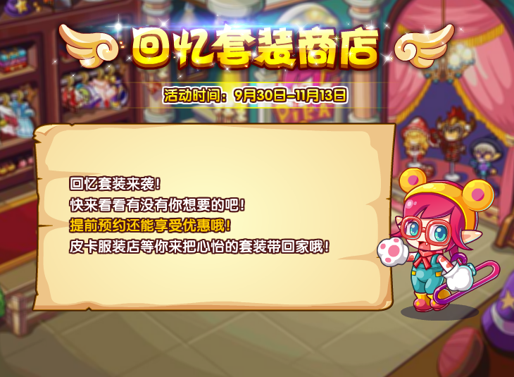 活动获得:大吉岭套装,熊猫套装,草莓熊套装,瓢虫套装,潜水员魔法装扮