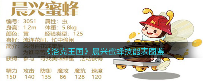 以上就是《洛克王国》晨兴蜜蜂技能表图鉴,更多精彩内容,请点击关注手游网,小编将持续为您更新!